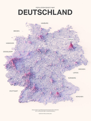 We can see density rising along the Rhine valley, where Germany’s industrial base is with cities like Düsseldorf, Dortmund, Stuttgart, and Frankfurt.