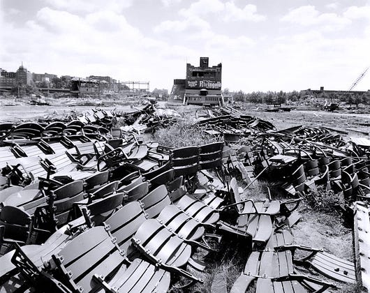 April 10, 1964: The Polo Grounds began demolition. A wrecking ball designed like a giant baseball was used. It was the same wrecking ball used to demo Ebbets Field.