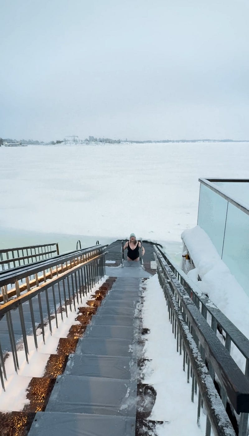 I did it!! In the Finnish tradition, half of the crew went to the Löyly Sauna and I jumped in the Baltic Sea afterward! Thrice!! 🥵🥶🤯