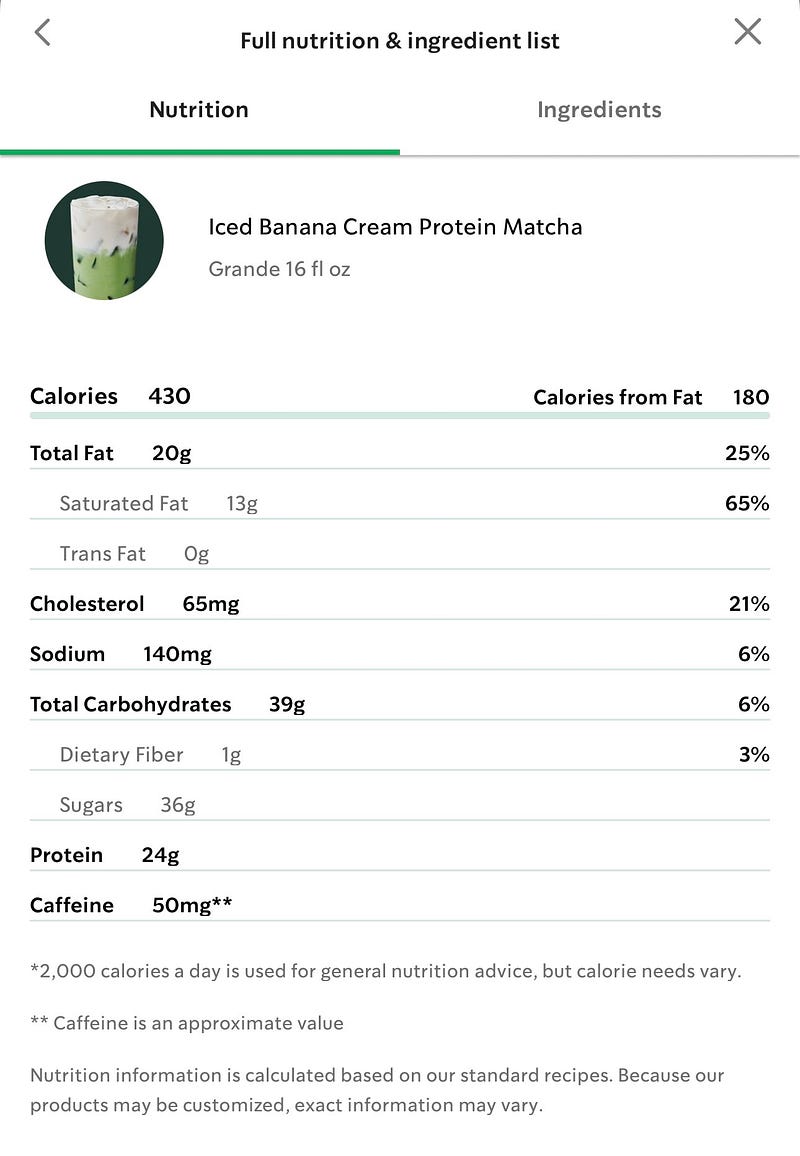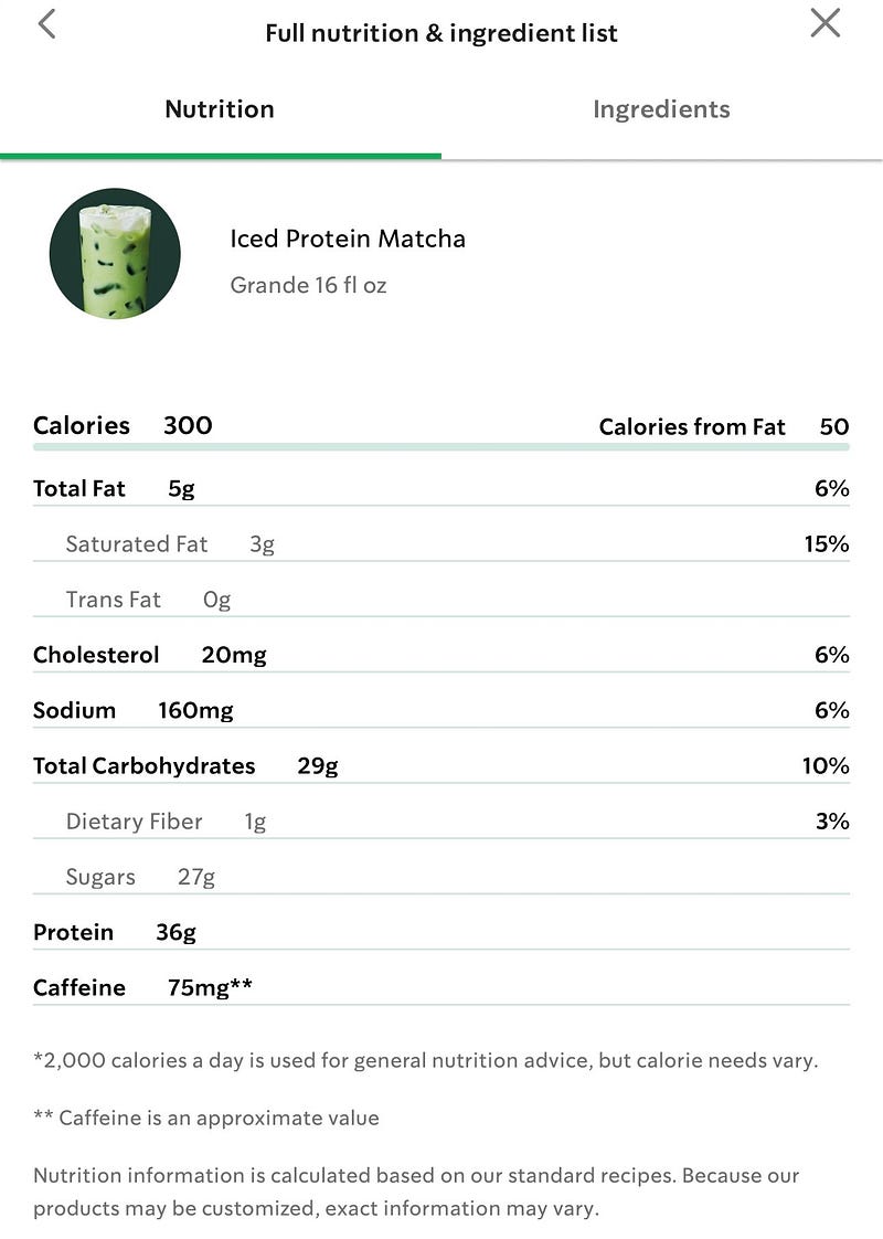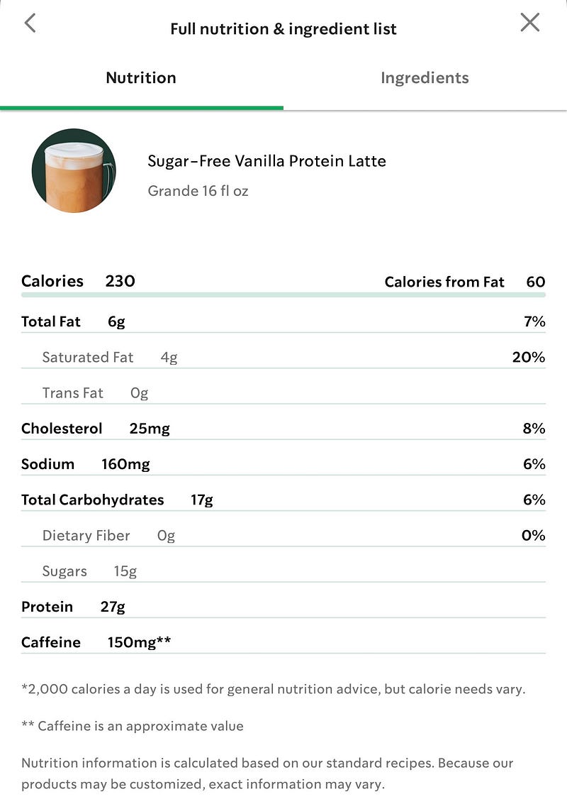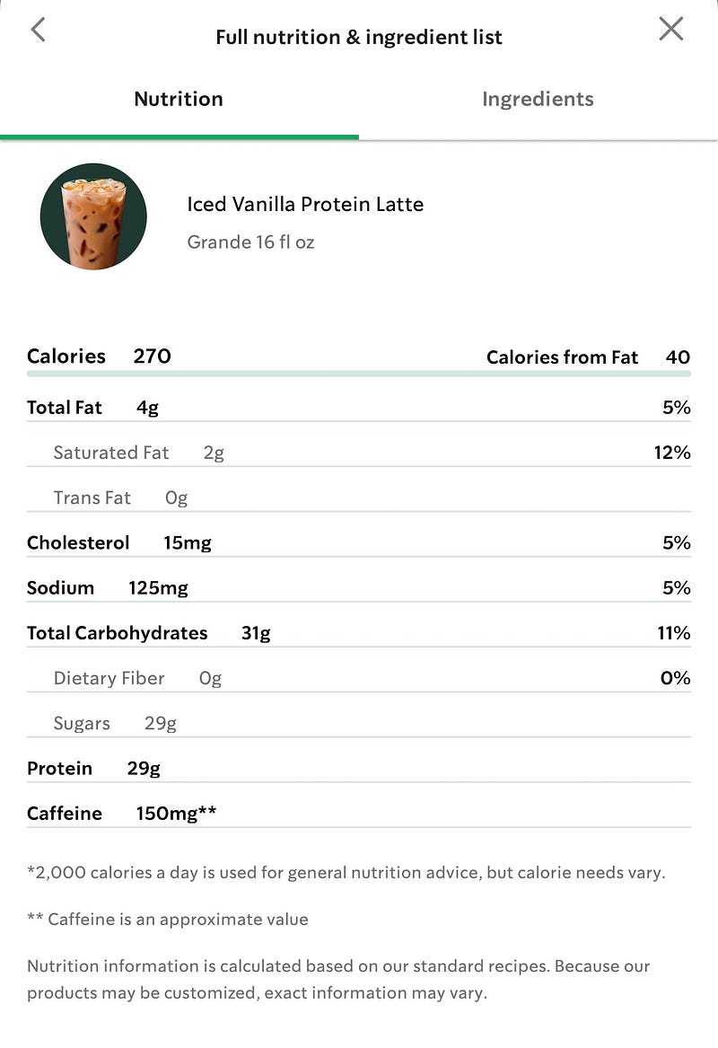 Starbucks’ new “protein” drinks are really just full of sugar. Even the sugar free option somehow still has 15g (for reference, the average scoop of ice cream has 25-30g of sugar) 🤔