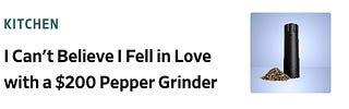 I saw the headline “I can’t believe I fell in love with a $200 pepper grinder” on the WSJ homepage and didn’t know if was a product review or a confessional piece about the author’s relationship with an AI pepper grinder.