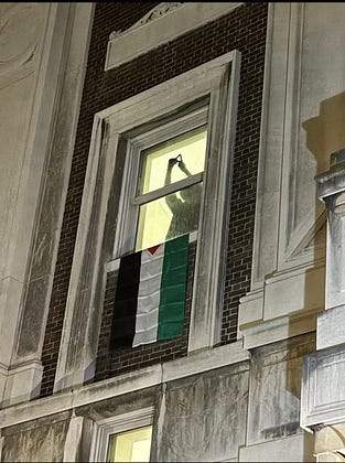 Pro-Palestinian ‘demonstrators’ are smashing windows at the Hamilton building on Campus while their ‘comrades’ outside are chanting: