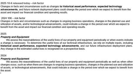 2025 10K released this am - Alphabet changed its wording and specific methodology both in its risk factors section and its Property and Equipment “useful lives” description.