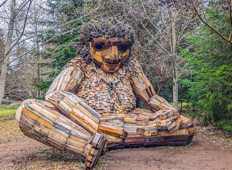 Yup, the Seattle area has five wooden trolls created by Danish artist Thomas Dambo, who has built trolls all around the world.