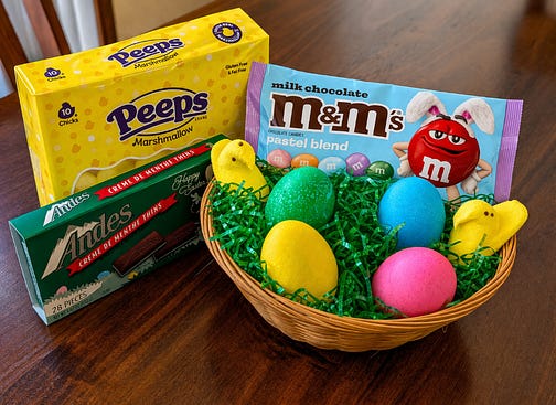 I surprised Brent with an Easter basket, including eggs I actually dyed.