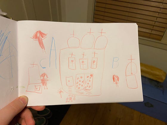 “Papa, I drew a Catholic Church!”
