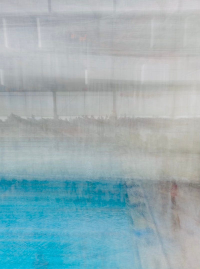 Yesterday at my son’s swim meet, I took a long exposure of the pool. Swimmers blurred into streaks of light and color, and for a moment, everything slowed down.