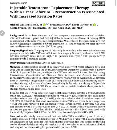 injectable TRT before ACL reconstruction associated with higher revision risk