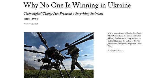 My assessment in Foreign Affairs at the three year mark of the Russian large-scale invasion of how some elements of the war in Ukraine will impact on the character of future wars.