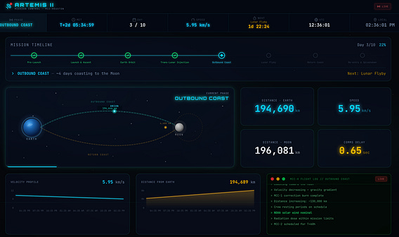 Artemis II tracker dashboard: