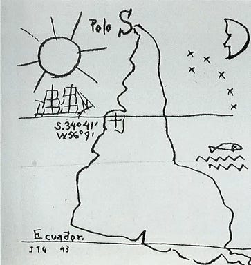 El autor también publicó un manifiesto, titulado La Escuela del Sur, en el que reivindica que para los sudamericanos el punto evidente de referencia debería ser el sur, ya que así lo marca el hecho de que la mayoría de Sudamérica se encuentre en el hemisferio sur. Según los críticos de arte, este manifiesto y el mapa está muy influenciado por las tradiciones de los indígenas americanos.