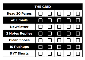 Do the things in order listed from top to bottom, and cross each one out in the grid as you go. When you reach the bottom, move on to the next column, until they are all done.