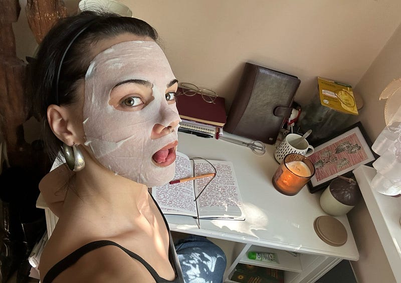 morning coffee, journaled 5 ½ pages, gingerbread man scented candle lit, soothing face mask, Men I Trust playing in the background, feeling good — might go out tonight. might not. we’ll see.