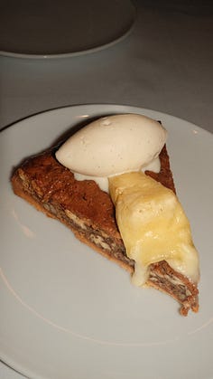 maple pecan pie with vanilla ice cream and mexican mountain cheese… even more of a banger than it looks