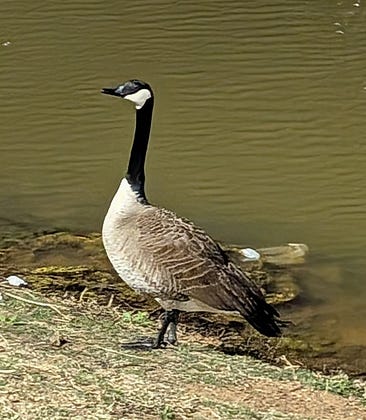 There Madame stood as she always did after feeding. Her neck clean from the water, her colors cut sharp against the green. She looked at something over the bank, the treeline, the rolling hills.