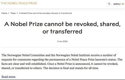 The Nobel Prize committee never needed to state the obvious, that its Prize cannot be revoked, shared, or transferred.