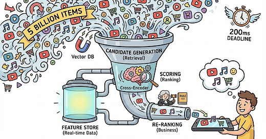 I just published a deep dive on the Multi-Stage Funnel—the architecture behind every modern recommender system: