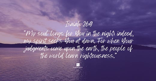 Isaiah 26:9 - “My soul longs for You in the night; indeed, my spirit seeks You at dawn. For when Your judgments come upon the earth, the people of the world learn righteousness.”