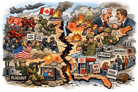 A war between the Canada and the United States would not resemble past American wars that consolidated national unity. It would instead function as a catalyst that converts long-standing internal fractures into open domestic conflict. The reason is not ideological novelty or foreign threat, but legitimacy. Modern states fracture when large portions of their population conclude that the government has crossed a line that cannot be justified morally, legally, or materially. A war against Canada—America’s closest ally, largest trading partner, and most integrated neighbor—would be widely perceived as such a line.