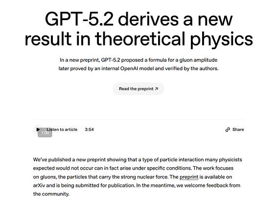 Another example of AI helping scientists. In this case, this is almost certainly due to ChatGPT 5.2’s amazing ability to solve very complicated integrals analytically, an ability which has been described as “better than Mathematica”. (link in comments)