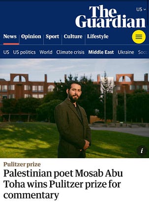 I’m honored to receive the Pulitzer Prize today. Great thanks to the prize’s jury and board members for honoring me.