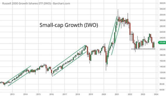 Just look at the monthly chart of the IWO small-cap growth ETF below.
