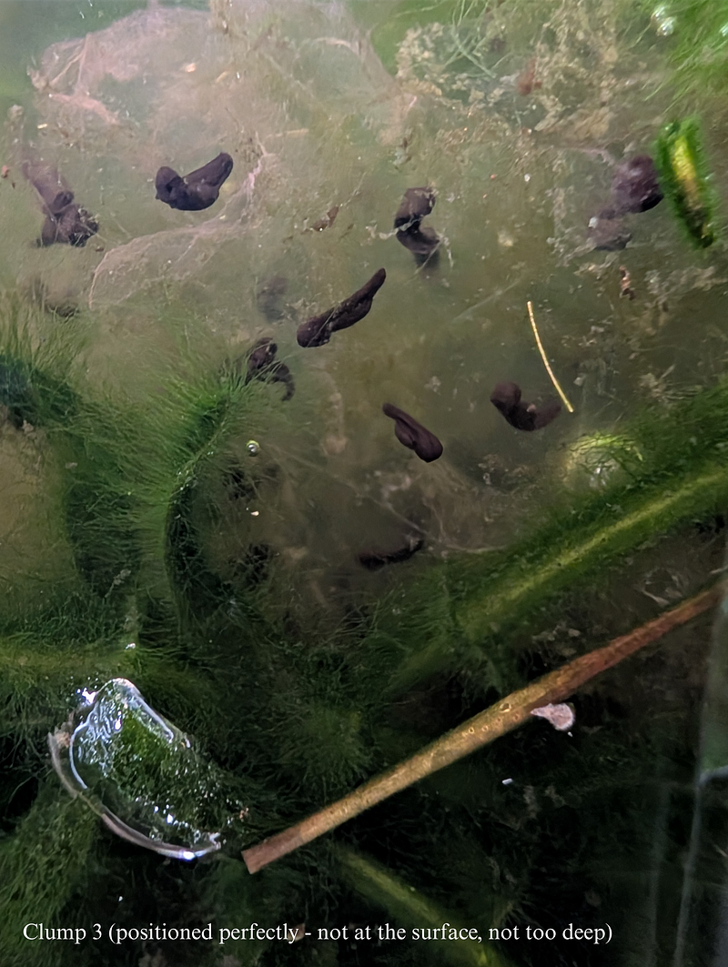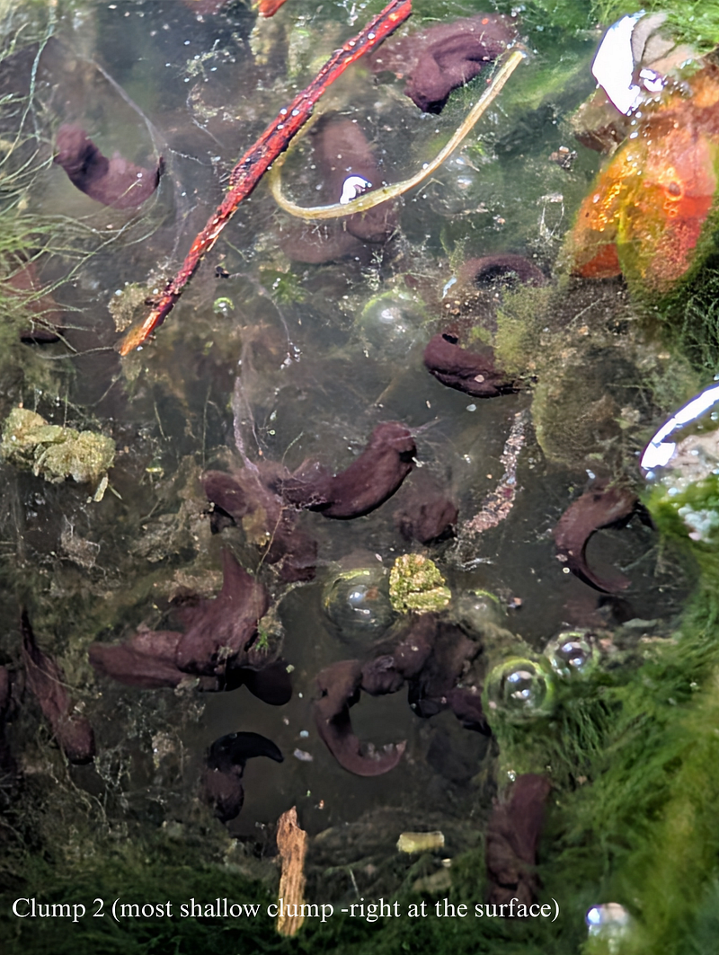 Clump 3 is positioned at a midway depth and the tadpoles there seem to be the biggest.