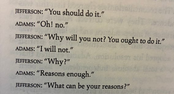Thomas Jefferson and John Adams, discussing whose turn it was to wash the dishes: