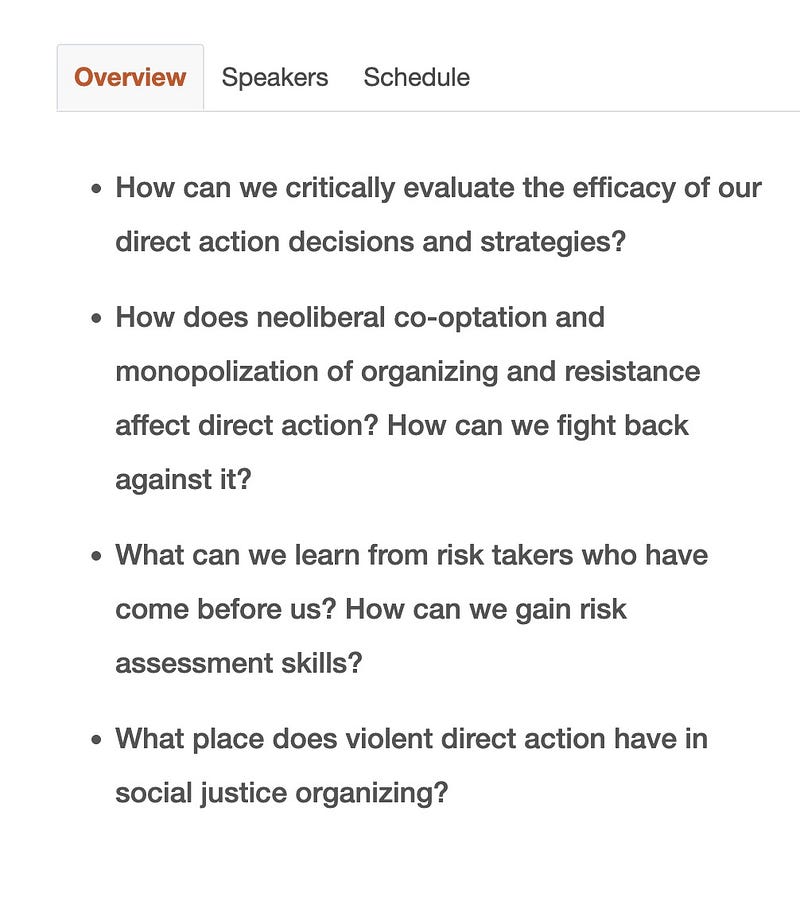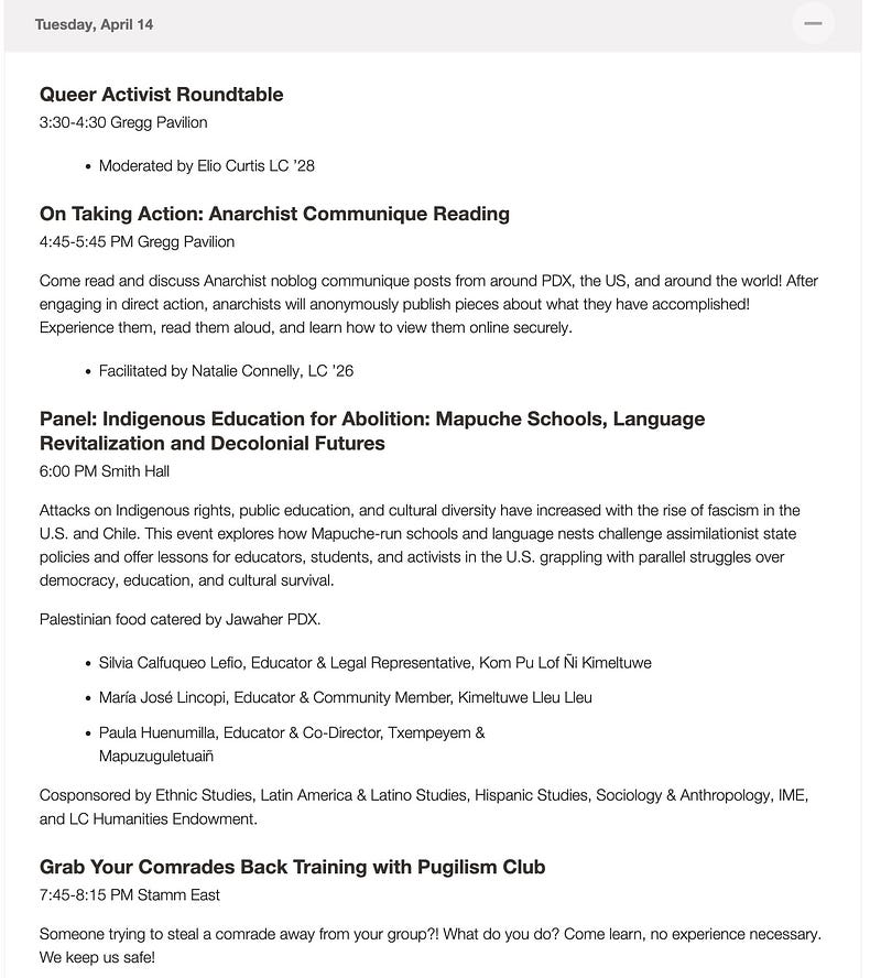They are directing attendees to hide their faces and the training on April 14 at the Gregg Pavilion building includes reading claims of responsibility of terrorist attacks from anarchist blogs and how to help "comrades" escape arrest. college.lclark.edu/stud…