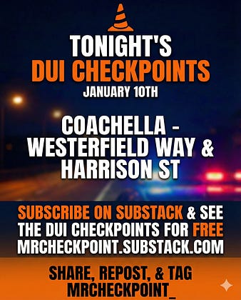 DUI Checkpoints Tonight January 10th 2026