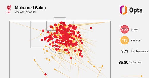 I began working for Opta in August 2017 - the same month Salah made his Liverpool debut.