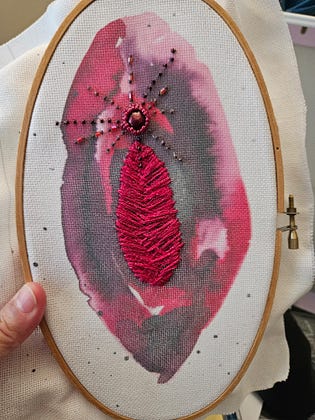 I'm not sure where this piece is going, but I'm enjoying the process of letting my intuition guide me. I haven't done beaded embroidery in a decade. Muscle memory and knowledge always surprises me.