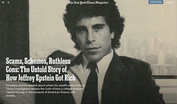 The NYT just published the most comprehensive account yet of what people on the internet love to incessantly ask: How did Jeffrey Epstein get his money?