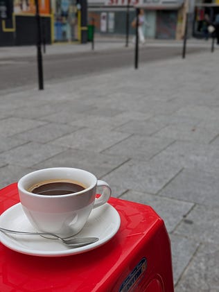 Today two of us went for a mid-morning coffee at my favorite neighborhood café. It’s a tiny place, so small in fact that if there multiple people waiting to order inside, it’s best to hold off entering to give everyone time to get sorted.
