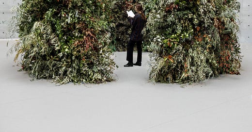 A meditative morning of reading before the Bourse du Commerce opens its doors.