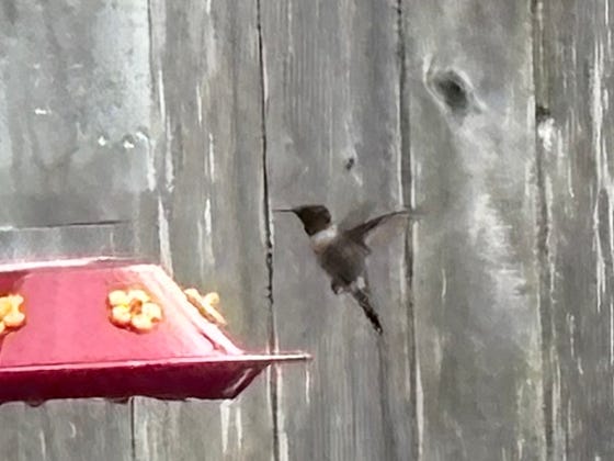 They told us that south Texas didn’t have hummingbirds but Mr Ruby Throat dropped by our backyard just now for a snack.