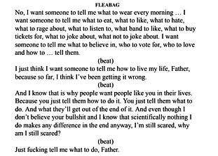 One of my favourite scenes ever is the confession scene from Fleabag (season 2, episode 4). I haven't been able to stop thinking about it since I watched it for the first time.
