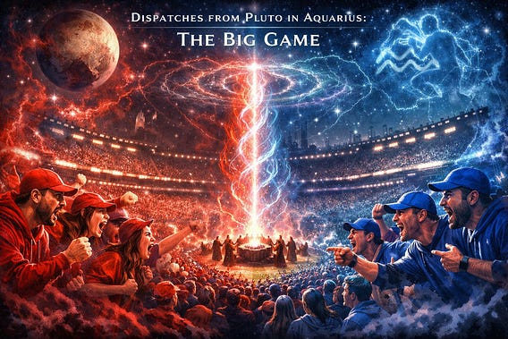 Pluto in Aquarius reframes the entire field, not just of the big game, but of reality itself. Not which team did the better halftime show, but who actually governs. Not which celebrity offended whom, but why institutions appear unable or unwilling to police themselves. This is the crisis of confidence you have written about before. A state that feels hollowed out, responsive to forces ordinary people did not choose and cannot see clearly.