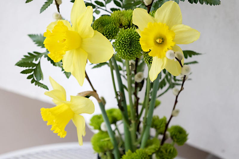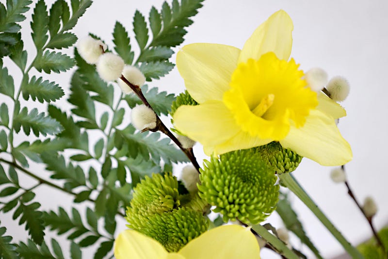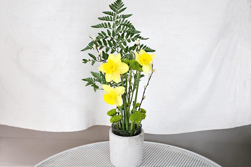 Here comes the rain! I just know what it will do to my beautiful flowers. I will wake in the morning to their bright cheery petals bentding down. So I gathered a few before the storm and brought a little sunshine inside. The Iris Society had a great meeting last Friday teaching how to make flower displays, and the teacher provided a bunch of supplies for free. She was so generous! The Iris in mine are gone, so I replenished it with three Daffodils. Then I enjoyed a little camera shoot as the wind was whipping around the fabric on the patio.