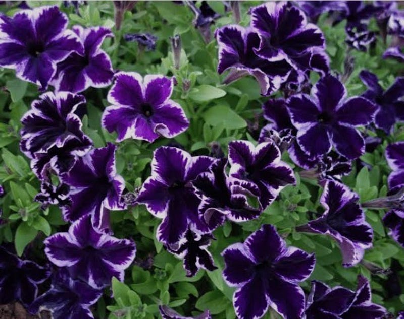Deep violet blooms with a white star at the center. Otherworldly almost.