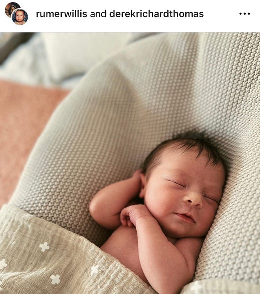 Rumer Willis and Derek Richard Thomas recently welcomed their daughter ✨Louetta Isley Thomas Willis✨