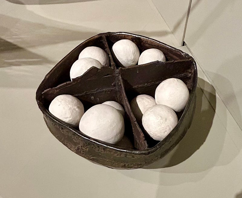 Don’t you just love it when an artist decides to depict the inside of a nutritious legume in ceramic form? “Homage to the tetraganolobus,” aka the winged bean or asparagus 🫛, is by avid gardener and protean artist Toshiko Takaezu. From a great retrospective on now at the Honolulu Museum of Art.
