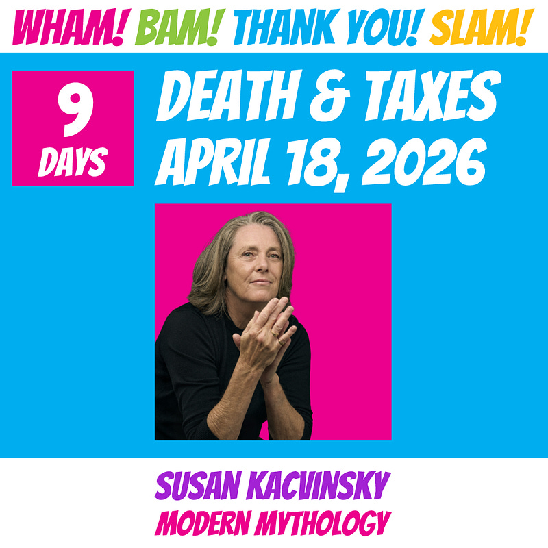 We’re 9 DAYS AWAY until the next Wham! Bam! Thank You! Slam! hosted by Nan Tepper. Oh, that’s me!