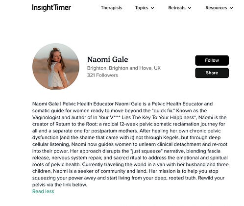 It’s taken years and some deep exploratory months but I’m committed to a path for this work. If you need me I’ll be here on Substack (I started here in 2020), my podcast Fanny Chat and I’m back to a deeper commitment to Insight Timer. All these platforms feel nourishing and sustainable for my own ecosystem. I’ve said it before and iI’ll say it again- socials is dying and people are done with being broadcasted to and talked at. insighttimer.com/naomig…. If you don’t know what Insight Timer is and you’re on here. You will LOVE it. Promise.
