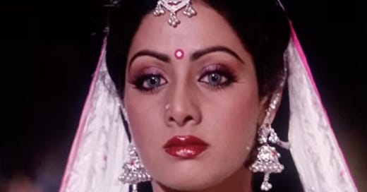 “In Chandni (1989), when a phone call tells her that her needlessly daredevil lover has had an accident, her expression of pain almost overshadows the accompanying loud music. In Lamhe (1991) her father’s death leads to shock, breakdown and silence in a matter of a few seconds. It is a performance of silence of course, but one which conveys the shock of death. The shock that a whole person can just stop existing.”