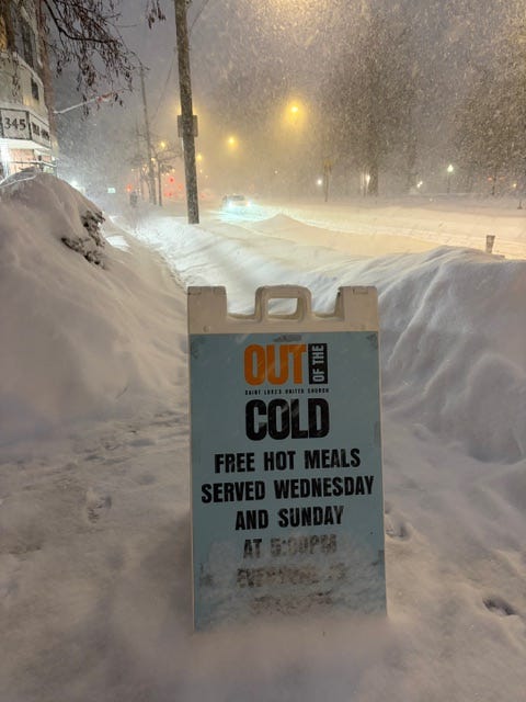 Blizzard Shmizzard! Pondering why so many of us showed up for our meal program during a record snow storm in Toronto.