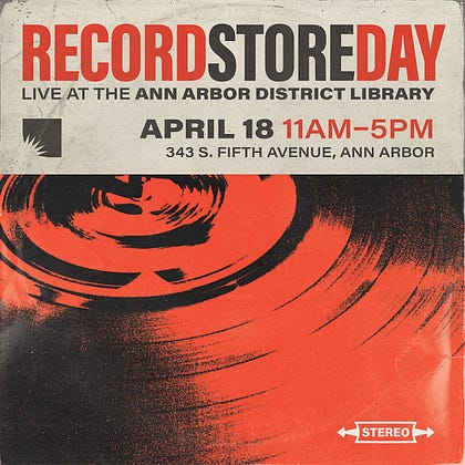 My poster for this year’s Record Store Day at the Ann Arbor District Library 🎶