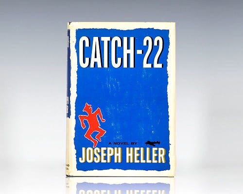 Before I ever thought about book design (or graphic design for that matter) as a profession, I was drawn to the cover of Catch-22 by Joseph Heller. It sat on my bed’s bookshelf headboard for years alongside Angela’s Ashes—another cover cemented in my mind—and other English class hand–me–downs from my sister.