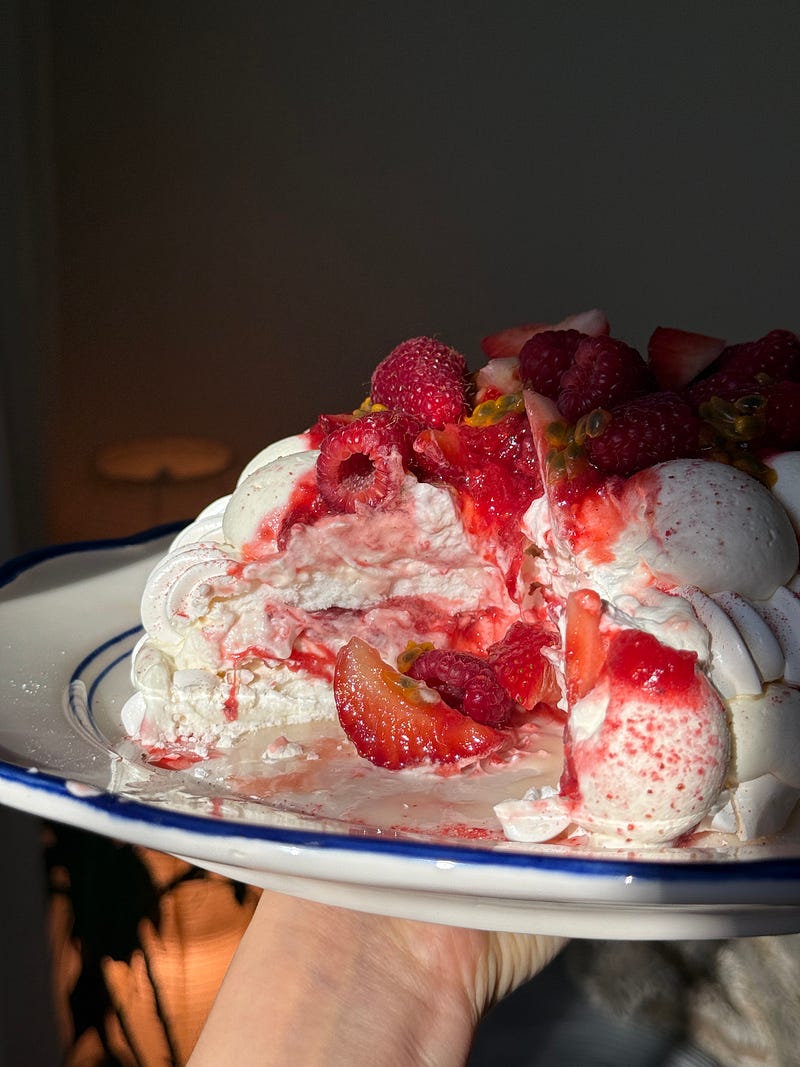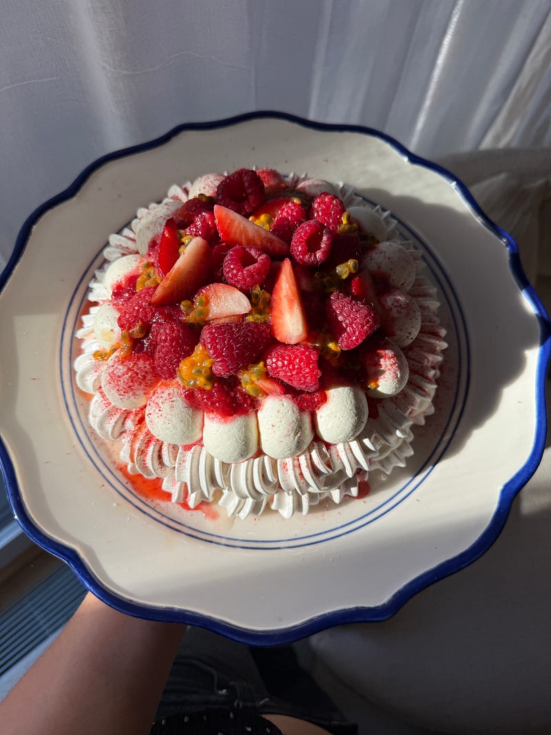 A Valentine’s Day pavlova coming next week! Was so inspired by the decoration of Karina Velasquez ’s beautiful mini pavlovas pictured🤍 I loved the freeze dried berry powder and dollops of passion fruit