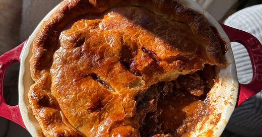 Beef, ale and mushroom pot pie with a puff pastry crust for this snowy week!